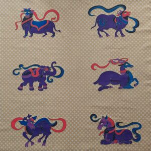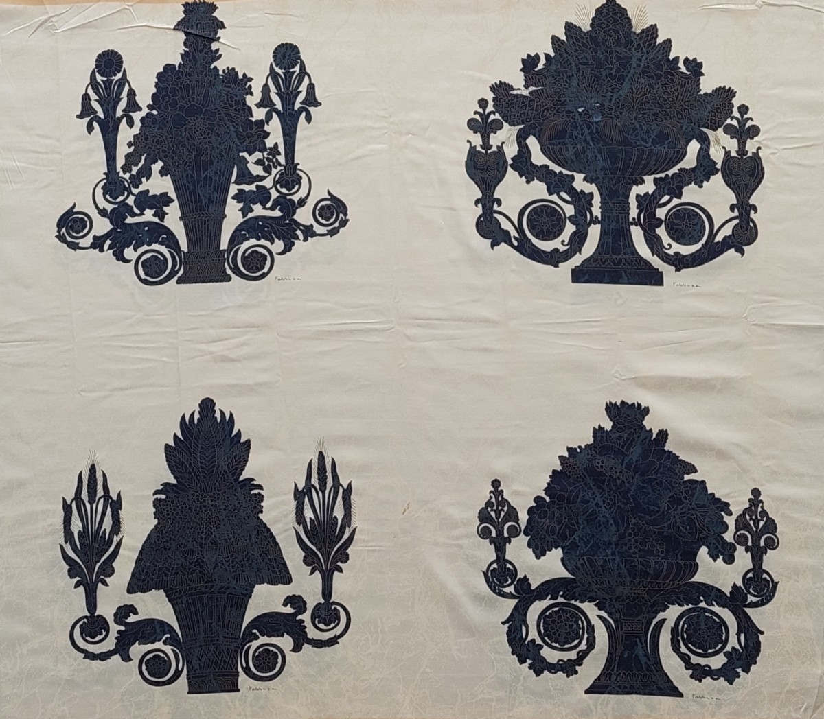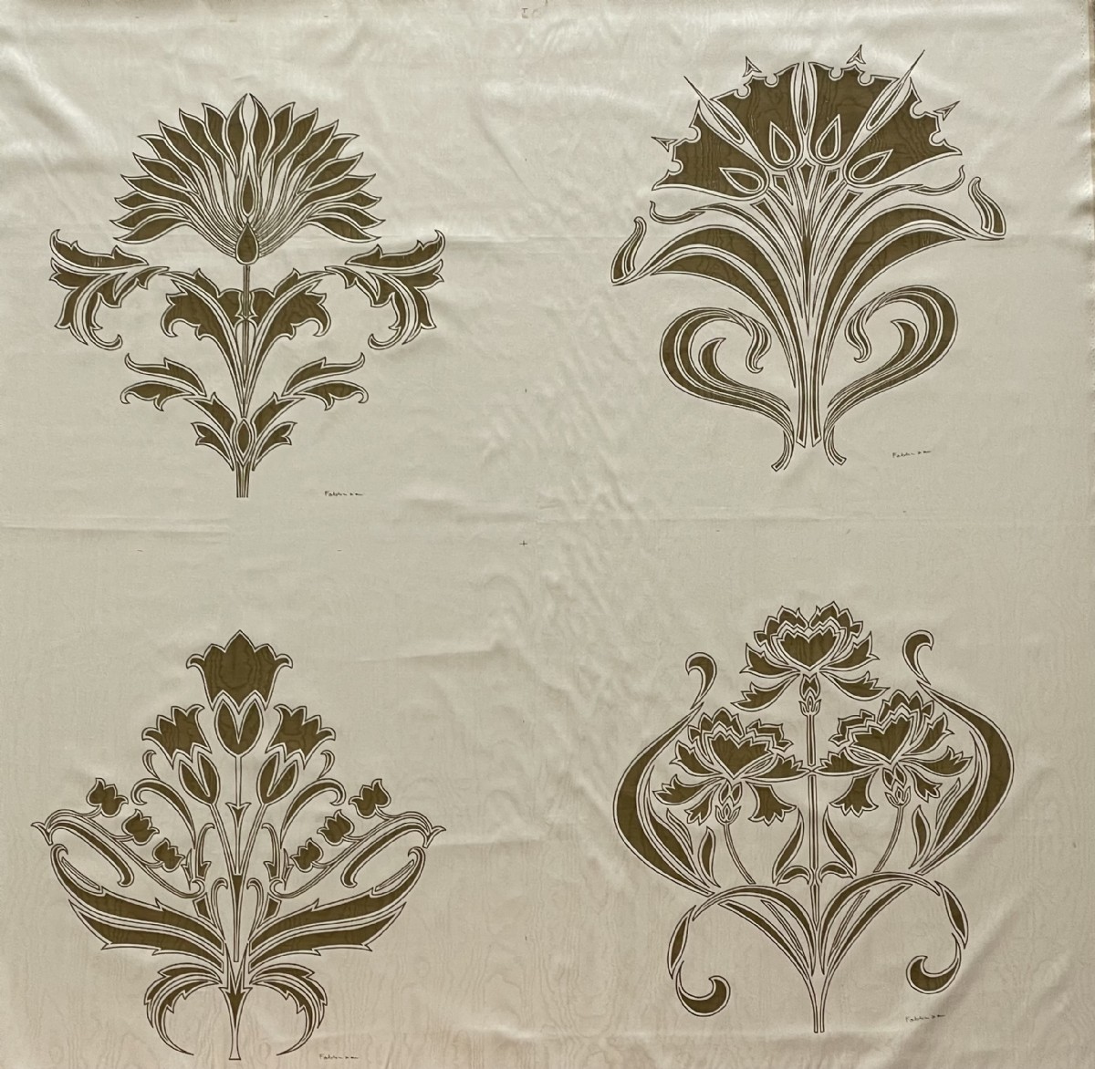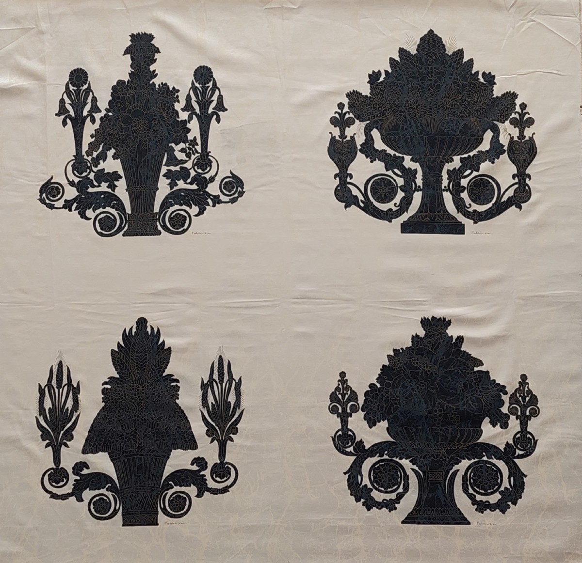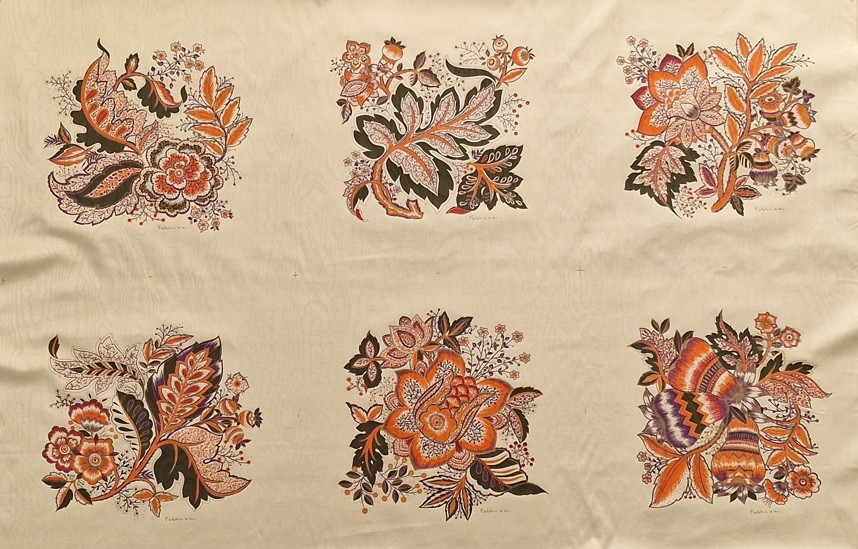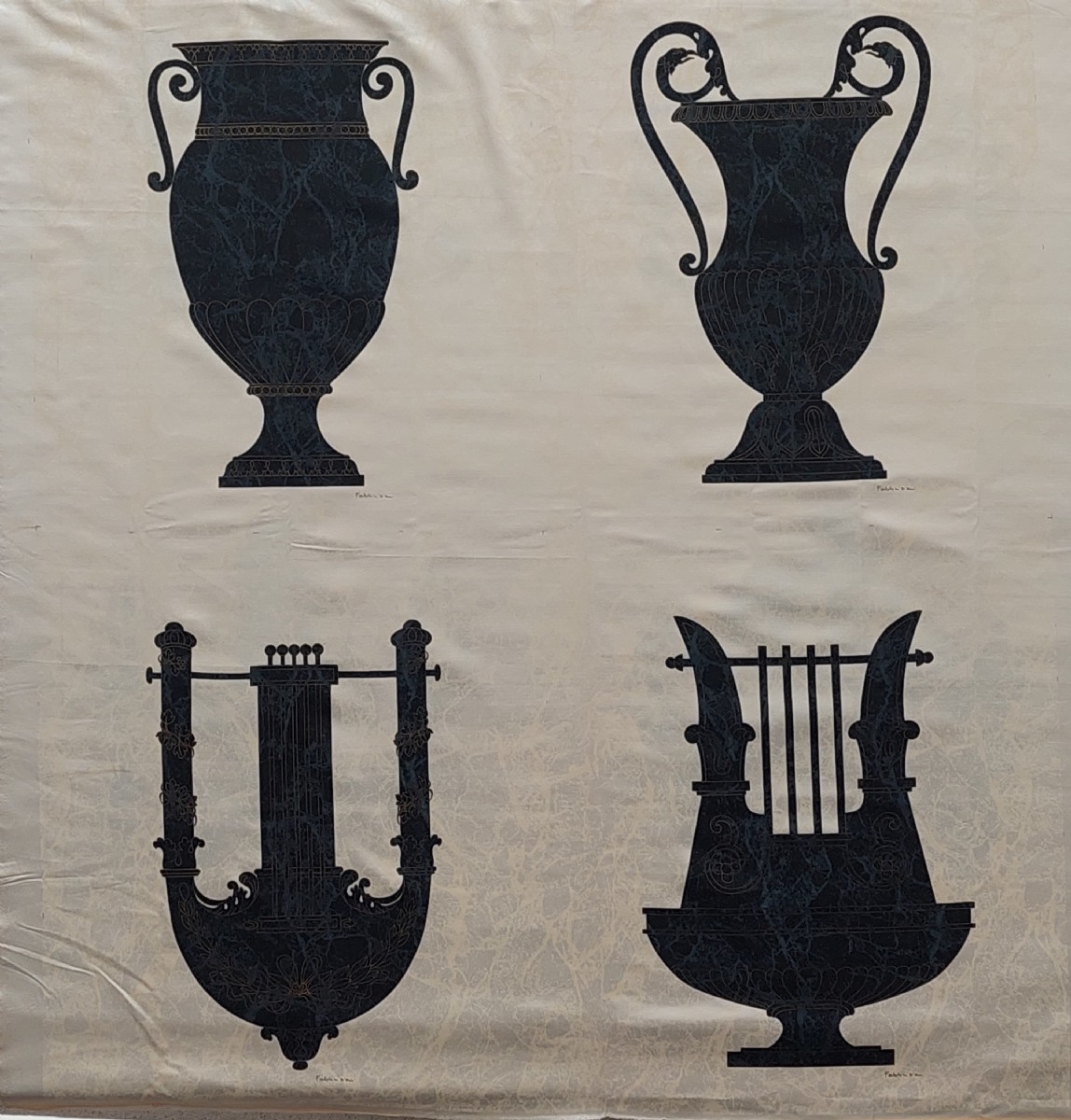 Gli arazzi di Fabbriziani & Calandra sono rappresentativi degli anni “70” e “80”. I due artisti della Roma dell’epoca, oramai deceduti, ideaorono un tipo di serigrafia, a tiratura limitata, su stoffe pregiate quali la seta, il raso fine o anche il lula lamé moherato. Le serigrafie riguardavano diversi soggetti artisticamente rappresentativi e adatti alla decorazione della casa.