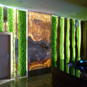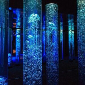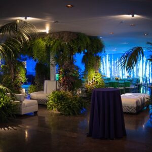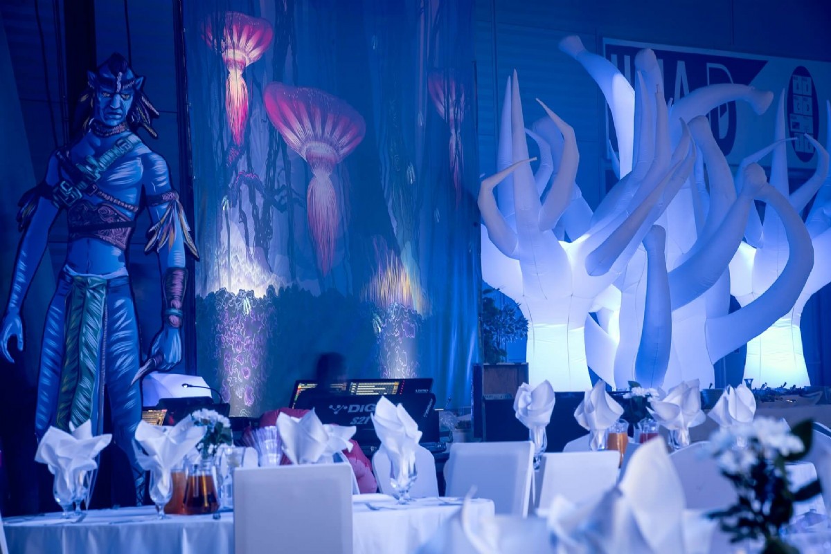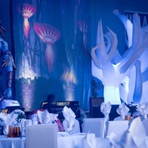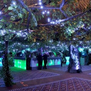 L’arredamento e la scenografia per questo tipo di locale a tema è composta da un connubio di giochi d’acqua e vegetazione che possono essere ricreati tramite licheni e piante stabilizzate insieme a pareti e colonne d’acqua che richiamano il tema del film.