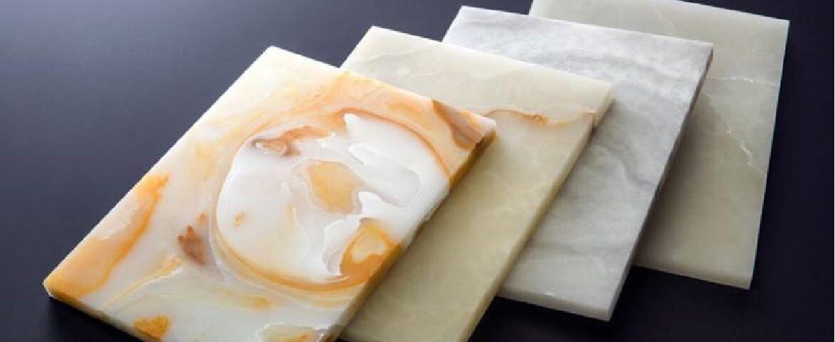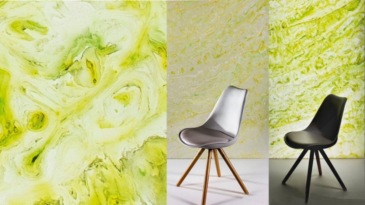Si tratta di pannelli in resina naturale riciclata nei quali è possibile incapsulare con una tecnica brevettata colori, materiali organici e strutture. I pannelli sono realizzati con il 40% di materiale riciclato, sono molto più leggeri del vetro e 40 volte meno fragili di quest’ultimo.