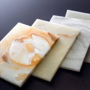 I singoli pannelli sono realizzati su commessa poiché sono possibili infinite variabili: è infatti possibile scegliere il tipo di materiale da incapsulare, il colore della resina, il grado di opacità del pannello, il tipo di finitura sulla faccia anteriore e il tipo di finitura del retro, l’eventuale texture della superficie del pannello e lo spessore del materiale.
