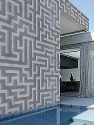 E’ possibile infatti produrre una robusta carta da parati con prestazioni mai viste con la quale rivoluzionare l’impatto visivo dei nostri spazi esterni attraverso soluzioni personalizzate. Il sistema, nato dalla ricerca e dalla sperimentazione, permette una nuova interpretazione del design per esterni e permette ai materiali e ai ricoprimenti tradizionali di assumere forme e linee inaspettate e un’interpretazione finora impensata per il rivestimento murale. La carta diventa materia per sviluppare progetti di estrema modernità in cui il taglio funzionale degli spazi viene esaltato attraverso immagini e cromie di grande impatto.