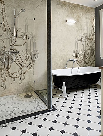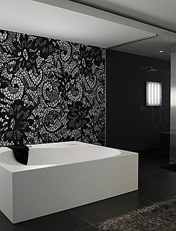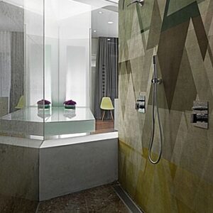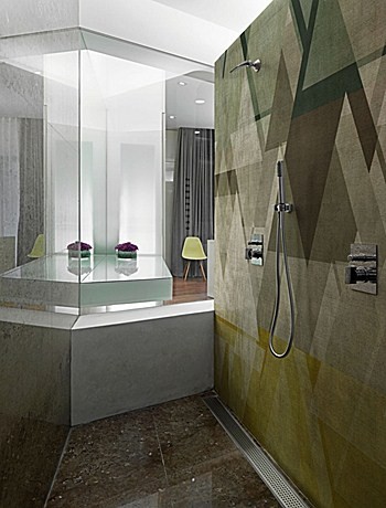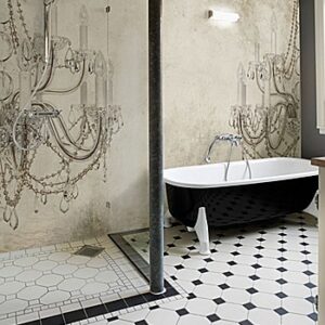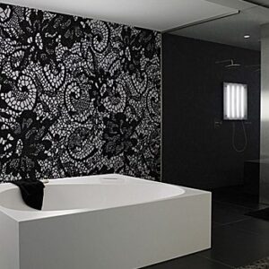 Finalmente è possibile posare la carta da parati anche in bagno e persino nella doccia.