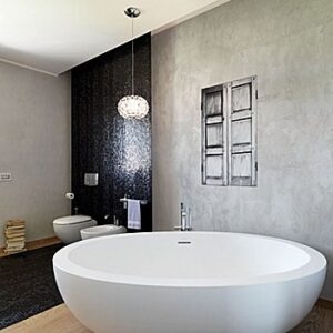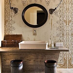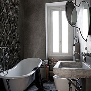 Si potrebbe usare la carta da parati vinilica, che come abbiamo visto, è impermeabile. Non sarebbe però la scelta ottimale perchè non è consigliato l’utilizzo della carta vinilica sulle pareti a diretto contatto con l’acqua come la doccia, la vasca, i sanitari ecc.