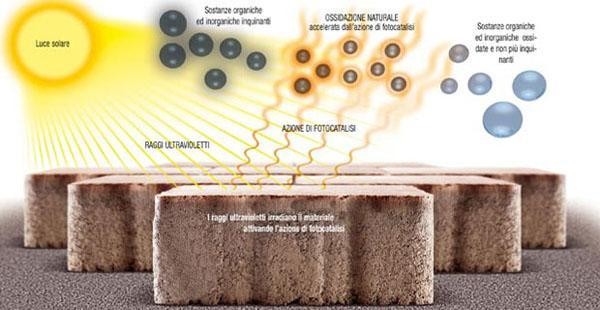 La componente “bio” è data dalle proprietà fotocatalitiche del nuovo cemento, ottenute grazie al principio attivo TX Active brevettato da Italcementi. A contatto con la luce del sole, il principio attivo presente nel materiale consente di “catturare” alcuni inquinanti presenti nell’aria, trasformandoli in sali inerti e contribuendo così a liberare l’atmosfera dallo smog. La malta, inoltre, prevede l’utilizzo per l’80% di aggregati riciclati, in parte provenienti dagli sfridi di lavorazione del marmo di Carrara, che conferiscono una brillantezza superiore ai cementi bianchi tradizionali.