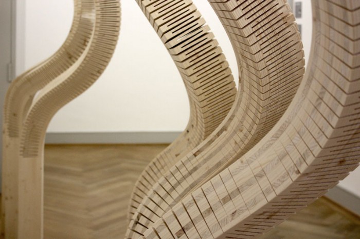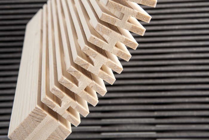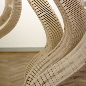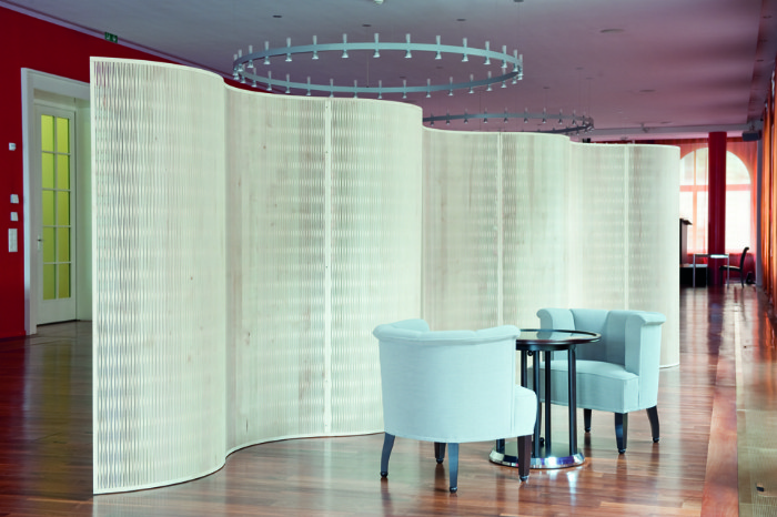 Dukta è un legno flessibile ottenuto attraverso una nuova tecnica di incisione. A causa di queste incisioni, il materiale guadagna elasticità e può essere modellato e utilizzato per pareti divisorie, mobili e persino lampade.