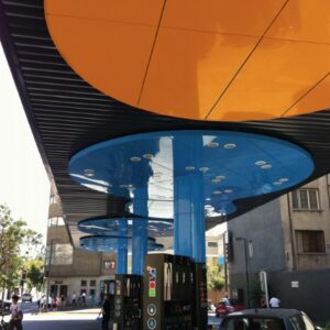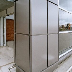 Le lastre invece più indicate per il rivestimento di facciate estere, o per il rivestimento di gallerie e balconi, hanno una lamina di alluminio di 0.50 mm e la superficie esterna è rivetita da uno strato di vernice con trattamento aggiunto in PVdf dello spessore di 30 µ mentre il retro è ricoperto da un primer con lo scopo di proteggere il materiale dagli agenti atmosferici.