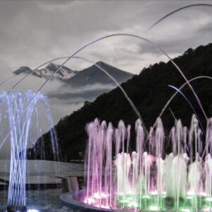 Di solito vengono collocati molti getti d’acqua nascosti in posizioni diverse: la colonna d’acqua salta da un punto all’altro e il suo getto incessante aggiunge dinamismo e vitalità all’ambiente circostante.