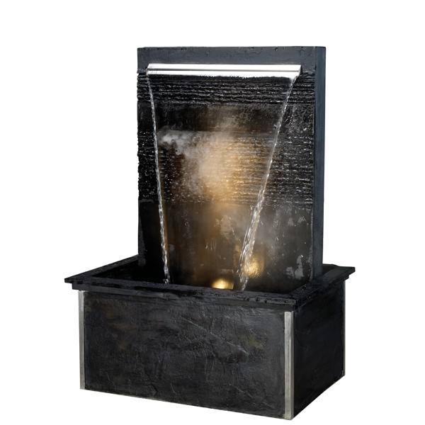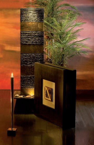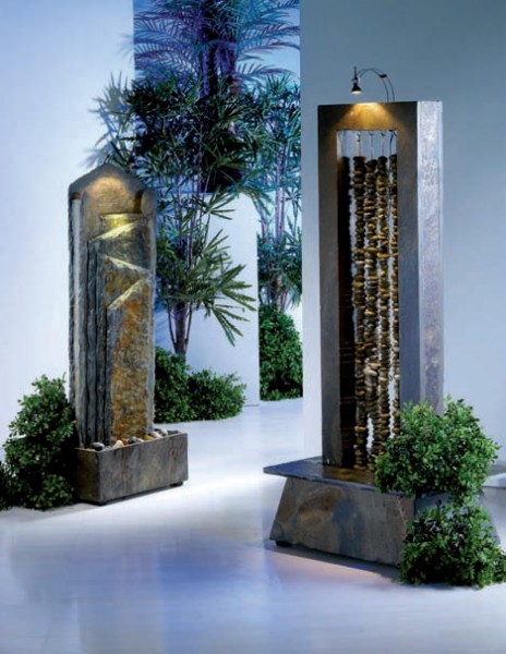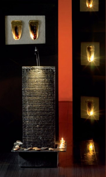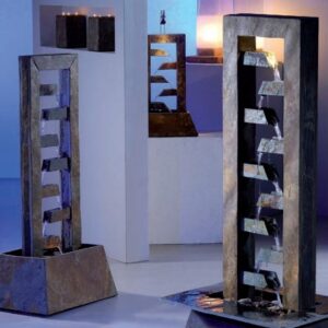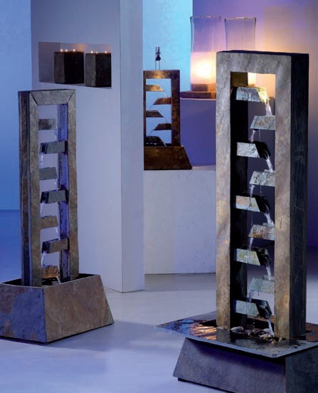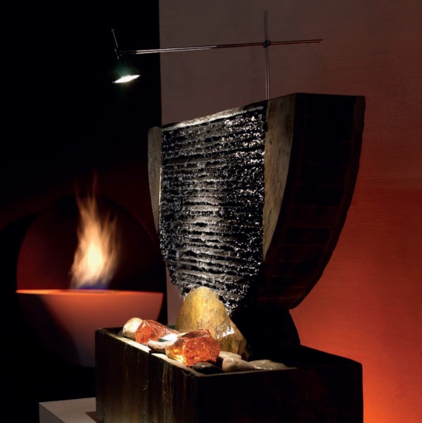 Le fontane per interni sono progettate in modo tale che l’acqua che vi scorre venga messa in movimento, e venga fatta ricircolare attraverso una pompa che la riporta sull’apice della cascata o della fontana. L’acqua che scende viene raccolta in una vaschetta e spinta di nuovo in alto attraverso la pompa.