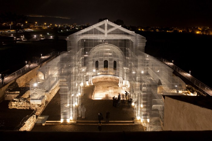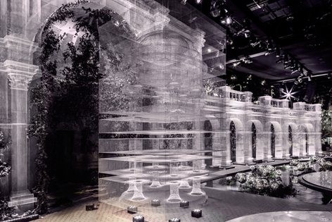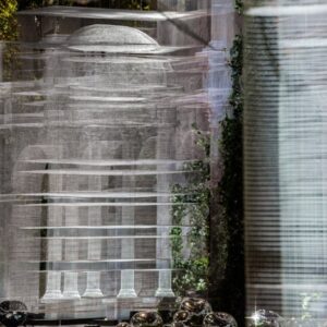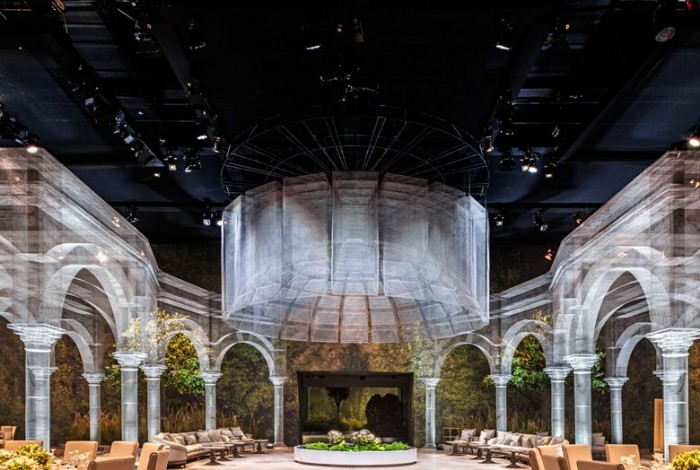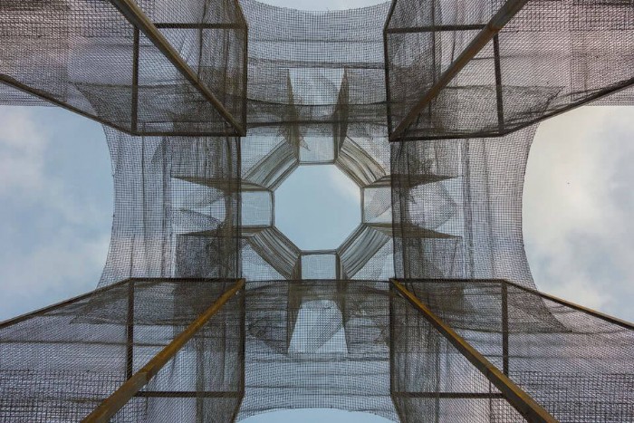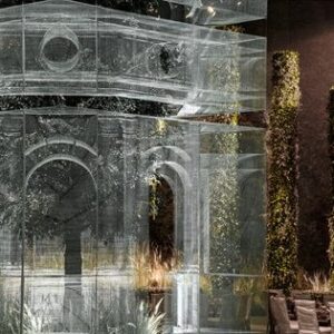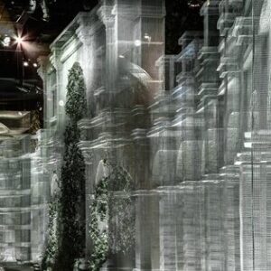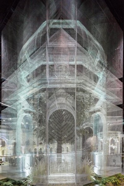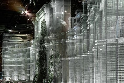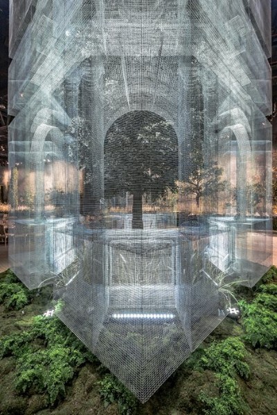 Tresoldi e DLE hanno immaginato un giardino "assoluto" in cui architettura e natura danzano in continue relazioni e contrasti fondati, secondo l’accezione rinascimentale, sulla capacità dell’uomo contemporaneo di leggerne le peculiarità, realizzando così delle vere e proprie opere d’arte in rete metallica. L’allestimento si traduce in uno spazio sinfonico in cui gli archetipi architettonici classici dialogano con i segni propri del linguaggio modernista, utilizzando gli strumenti della trasparenza e le sue ritmiche spezzate. Elementi geometrici assoluti – sfere, cubi, piani – tagliano e scompongono le armonie classiche, generando un evolversi continuo di astrazioni architettoniche e distorsioni evanescenti.