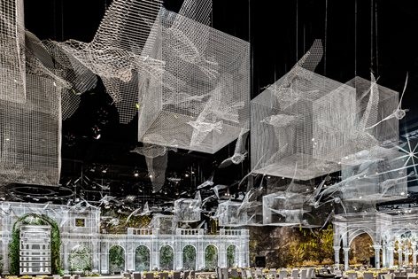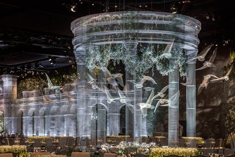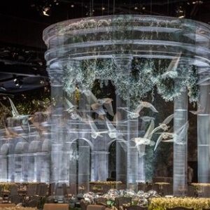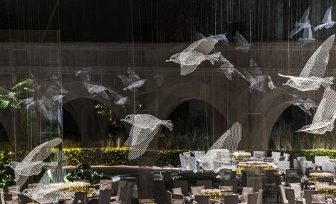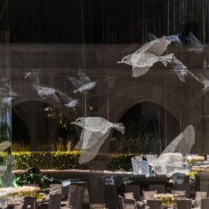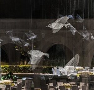 Edoardo Tresoldi ha disegnato e realizzato le opere d’arte all’interno di un evento per la famiglia reale di Abu Dhabi, in collaborazione con lo studio Designlab Experience di Dubai. Un lavoro di tre mesi per allestire l’evento, al quale hanno partecipato circa 1.900 invitati provenienti da tutto il Medio Oriente. Il grande spazio scenografico di 7.000 metri quadri segna un passo in avanti nella ricerca dell’artista italiano, che si confronta per la prima volta con la progettazione di un evento indoor, lavorando con Mootassem Elbaba e Marwan Maalouf di Designlab Experience. Alcune opere saranno reinstallate separatamente in luoghi istituzionali: università, musei e parchi della capitale degli Emirati Arabi Uniti.