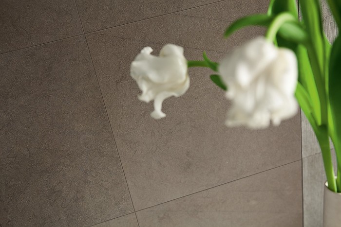 Pietra grigio ferro con sfumature più scure disseminate in modo irregolari. Il particolare tono e la bella tessitura lo fanno risultare al contempo sobrio ed elegante, con un immediato senso di feeling.