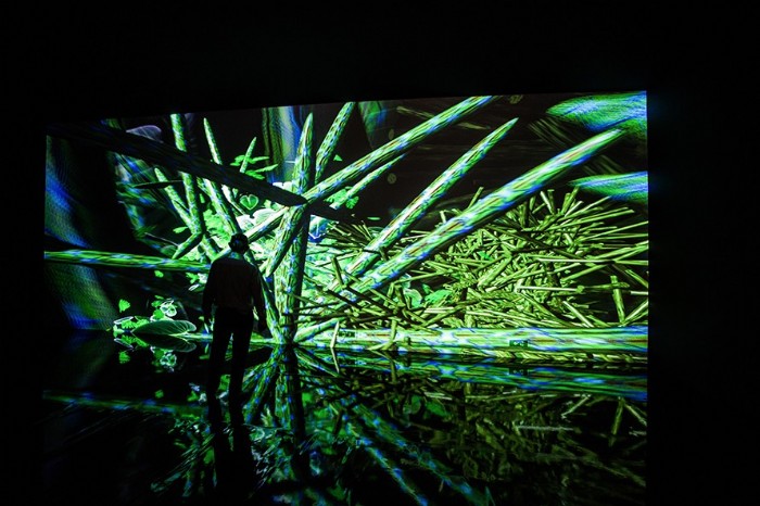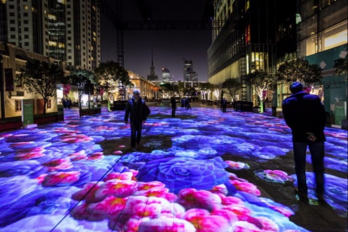 Digital Water Lilies è un nuovo giardino virtuale interattivo specifico del sito, un lussureggiante parterre di fiori e diverse varietà di piante luminescenti. Il giardino porta fiori di tesori ricchi di simboli e buoni auspici durante la primavera in Cina. Gigli africani, orchidee, fiori di pesche di camelie, sono tutti vissuti in diverse dimensioni, colori e forme. Essi appaiono a caso, arrivano in piena fioritura e si dissolvono solo per rinascere nuovamente. Il giardino si rinnova di volta in volta, continuamente mutevole e fiorente nella sua gloria estiva creando un incanto infinito per gli occhi. Mentre i visitatori camminano intorno al tappeto di fiori di 600 mt quadrati, il giardino li sente e si sposta intorno a loro con fiori che aprono percorsi di scoperta. I visitatori sono liberi di giocare spontaneamente e, attraverso la fisicità del loro corpo, aprono ed esplorano tutte le possibilità dell’opera. Sono collocati al centro di una natura reinventata, un universo botanico intrigante e poetico. Come una nuova forma di "impressionismo digitale", il titolo e la sensibilità cosmica del lavoro svolgono omaggio a Monet e alla sua ricerca sulla luce, le stagioni e la natura.