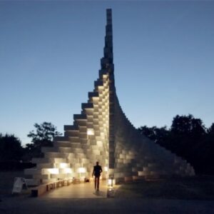 La sera, il baldacchino diventa fonte d’illuminazione. Le perforazioni delle pareti permetteranno di intravedere il movimento e le attività all’interno del padiglione e in questo modo anche di sera il padiglione diventa un faro di luce, un simbolo di narrazione e unione.