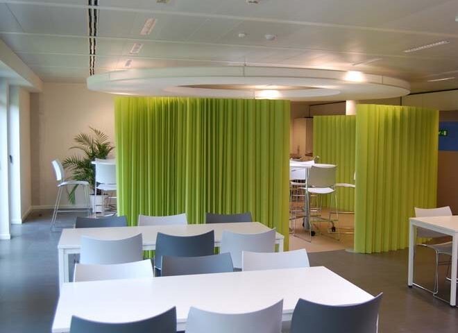 Si tratta di una struttura a nido d’ape verticale in teli di TNT (tessuto non-tessuto) leggero e resistente, dall’effetto simile alla carta giapponese. E’ composto da cellulosa, latex, fibra di vetro, poliestere. Questo materiale, in classe 1 di reazione al fuoco, esiste in bianco e in 14 colori standard.