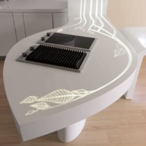 Composizione: il pral è uno straordinario materiale artificiale, ottenuto dalla combinazione tra un minerale naturale inorganico, l’idrossido di alluminio, e un polimero acrilico. Durante il processo produttivo di polimerizzazione, vengono creati legami chimici tridimensionali per un materiale finale stabile e non reattivo, del tutto omogeneo.