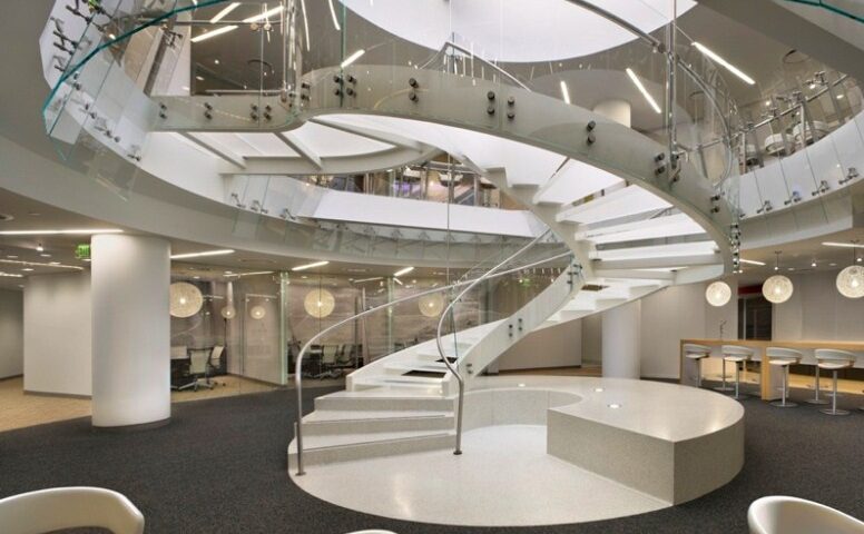 - scala con gradini ecoresina opalina e balaustra ecoresina trasparente