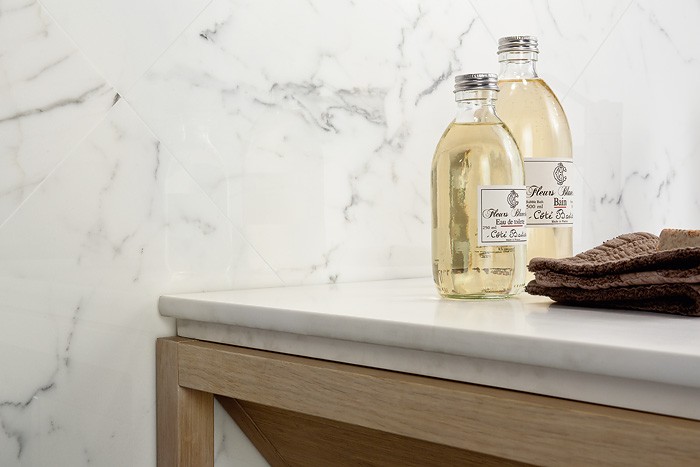 Marmo di colore bianco con venature sottili e medie di colore grigio che formano una tessitura unica. Materiale da sempre tra i più famosi ed affascinanti esaltato da famosi architetti e grandi scultori.