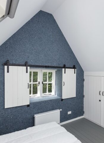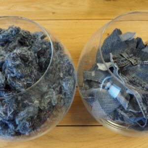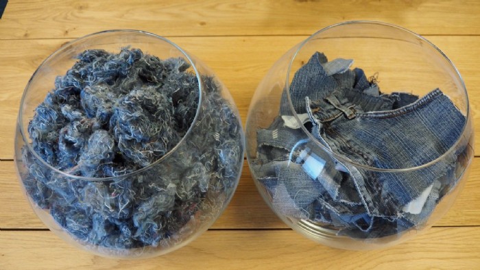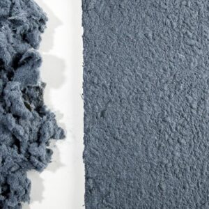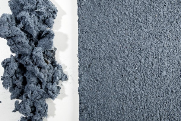 I vestiti e i jeans scartati vengono trasformati in un rivestimento murale decorativo e acustico riciclando i vestiti e mescolando le fibre risultanti con una colla a base di biobased. Utilizzando fibre di colori diversi possono essere creati interessanti effetti decorativi.