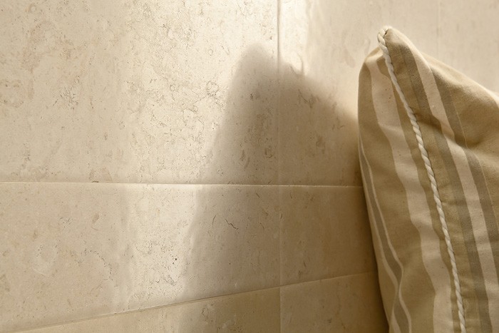 Pietra calcarea dalla struttura uniforme di un colore avorio chiaro, talvolta scaldato da sfumature giallo-ambrato. La presenza di intrusioni fossili esprime la naturalità di una pietra che coniuga la semplicità visiva con l’eleganza antica della materia.
